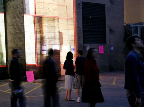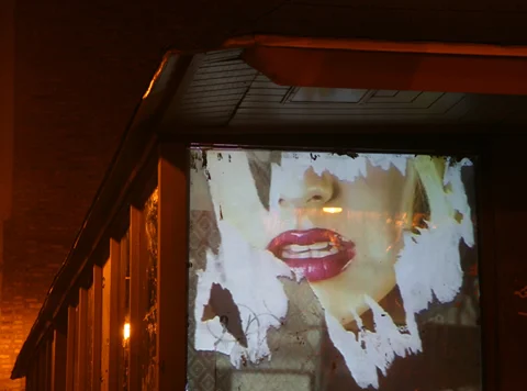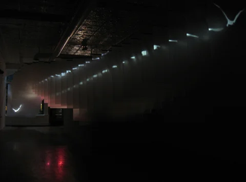 An installation located at a cross-section of movement and transportation, using imagery from the surrounding space to comment on the ever-changing landscape. The work uses a passing train as a projection surface to explore the ephemerality of the art experience.