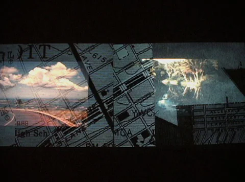 Found slide projector images of a 1960's Hawaiian vacation superimpose archival maps of Detroit. As the maps slowly scroll in various directions, the tropical imagery overlaps the urban landscape. The work celebrates the Detroit art community.