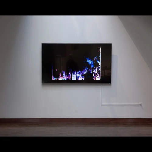 The work involves the cultural love/hate relation ship that society has with changing technologies. The simple heartbeat of the video represents the "life" of video technology as well as the lifespan of the machine it it shown on. The short clip was dubbed over and over using a VHS player and tapes. The image slowly disintegrates due to the generational loss caused by the dubbing process. The heart beat loses color and shape, ultimately fracturing and disappearing.